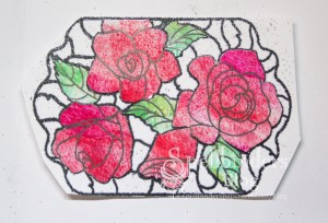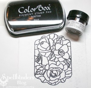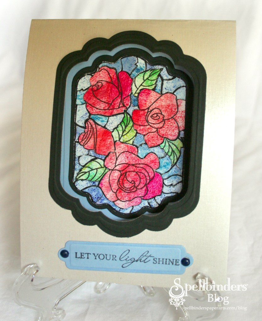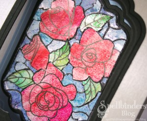 I teased about another idea with the Flourishes stamp set, and here it is. I don’t think of myself as a stamper so much as a paper crafter, so my brain goes beyond the stamp and color it in phase. I went in the ‘what kind of color would mimic stained glass’ and took it from there. I posted the full instructions on the Spellbinders™ Blog.