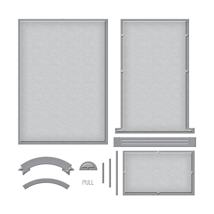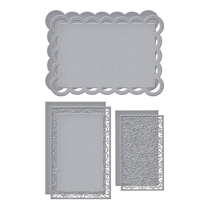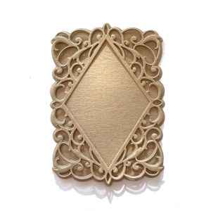 Becca says a book cover with four elegant corners inspired her, she thought it was a dreamy and dramatic way to showcase a frame.  Bella Diamante is a 5 x 7 card front, with several element layers and rims to use as inlays.  These multiple rims and elements will allow for both A2 and A7 cards.  Elegance reigns supreme with the ability to create shaped cards,  framed cards, or simply embellish with class.
