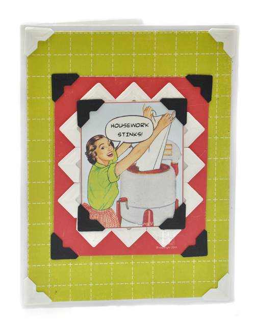 See where the die cuts are sort of outlined? After I die cut and embossed the papers, I sanded the embossed edges to give them more definition. Then I placed the die cut back in the die and inked around the die, adding another element of color and dimension. I inked the edges too. The top die cut was adhered with 3D Foam Squares adhesive so it has some lift.