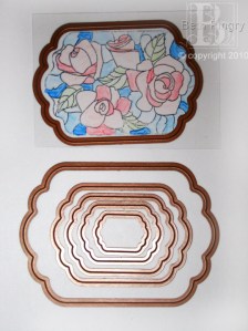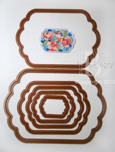 I created a 6-panel door using S4-142 Long Classic Rectangle LG #2 (the smallest is #1) to make four of the panels, and S4-128 Classic Squares SM #3 for the top pieces. I inked the edges and embossed lines with Distress Antique Linen ink, and adhered the panels with SCRAPBOOK ADHESIVES BY 3L 3D Foam Squares, to give them more dimension. The door knob is a glitter brad from Creative Impressions, and it’s on the smallest die cut from S4- 283 2010 Heirloom Ornaments. All paper is from Worldwin.