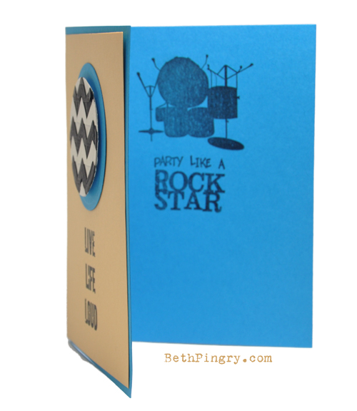 I made the center from Scrapbook Adhesives by 3L® Photo Corners placed in a chevron pattern. Then I die cut it with Spellbinders™ circle dies, and adhered them with 3D Foam Squares.  The stamp is from Gina K. Designs. Here is the inside: