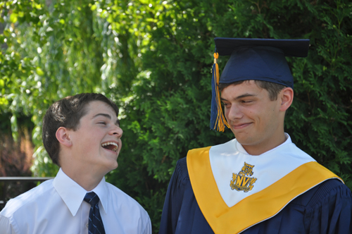 I made the outstretched arm holding a rolled up diploma, and the car is in his school’s colors. I added a mortar board to his head.