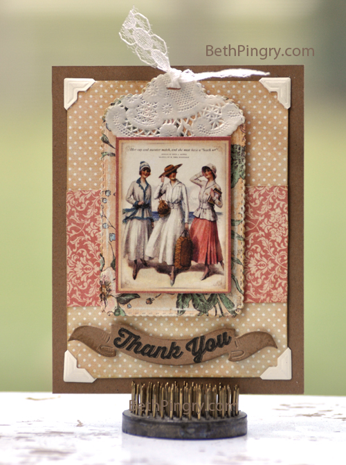 I fussy cut the images and adhered the stem with E-Z Dots Repositionable, so that you don’t see any adhesive. The bloom uses 3D Foam Squares to give it a pop off the card. I stacked the papers with opposite colored Photo Corners because I love the way it helps frame the central image.