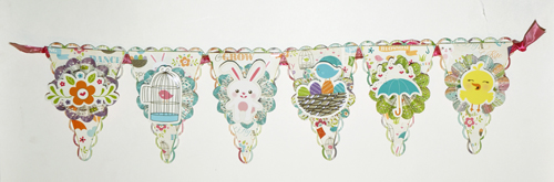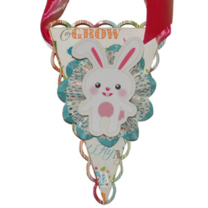 (supplies used: Scrapbook Adhesives by 3L™: ™ 3D, ™ Permanent Strips; Imaginisce: Hippity Hop Collection – papers, stickers, die cuts; Cardstock: Turquoise and white )