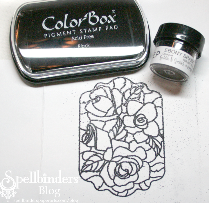 Stamp image again onto white cardstock, and heat emboss: