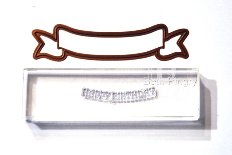 For the banner on the front, I stamped the plaid images and cut/embossed with the ribbon piece from Nested Pennants.  For the Ribbon Banners, I curved the stamp to match the curve of the die cut.