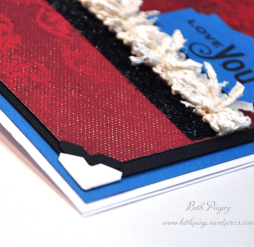 On that note though, I like that it really looks like an elegant Victorian tea cup. I used embossing ink, carefully applying it to the rim only, by inking just that part of the die template, called reverse stenciling. I embossed in the Spellbinders Grand Calibur® machine, then added embossing powder and heated.